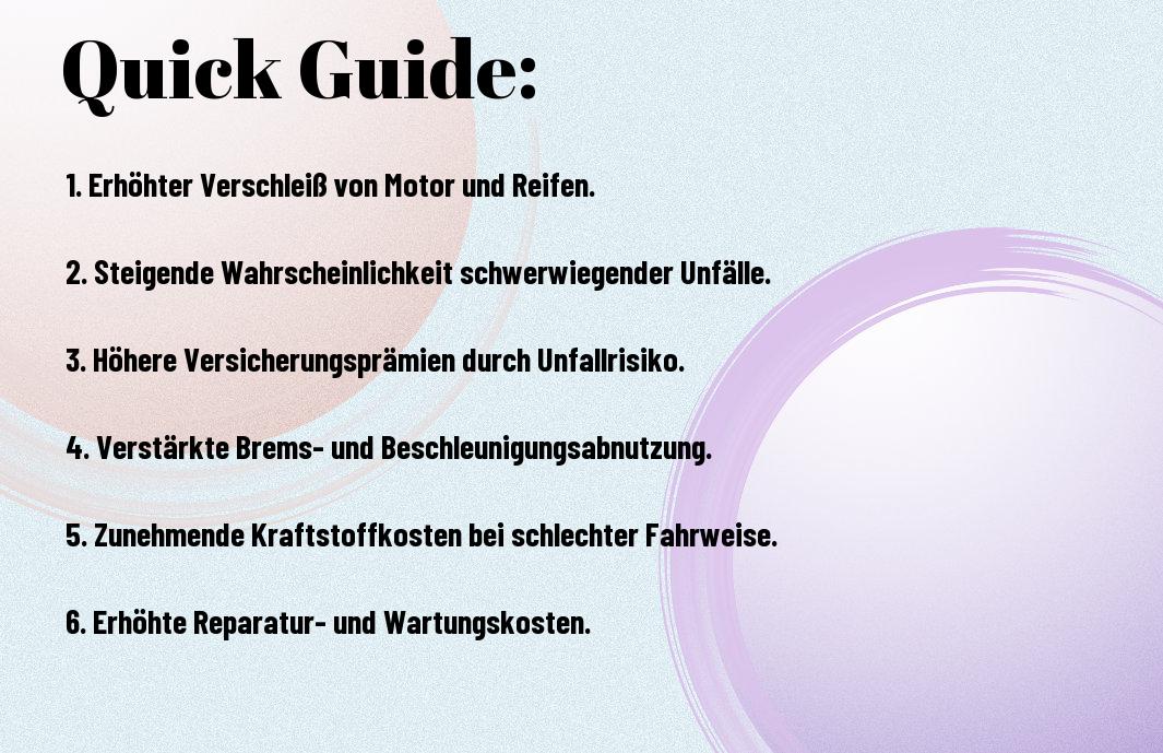 | Geschwindigkeitsüberschreitungen | Erhöhter Motor- und Reifenverschleiß, höheres Unfallrisiko |